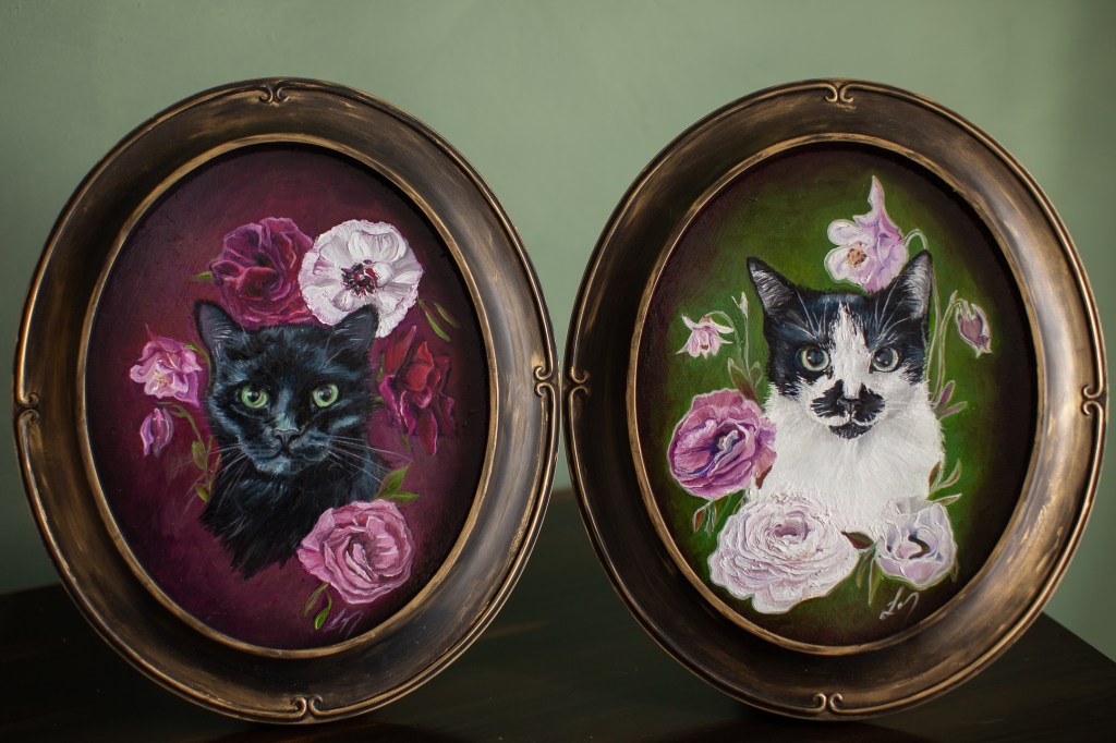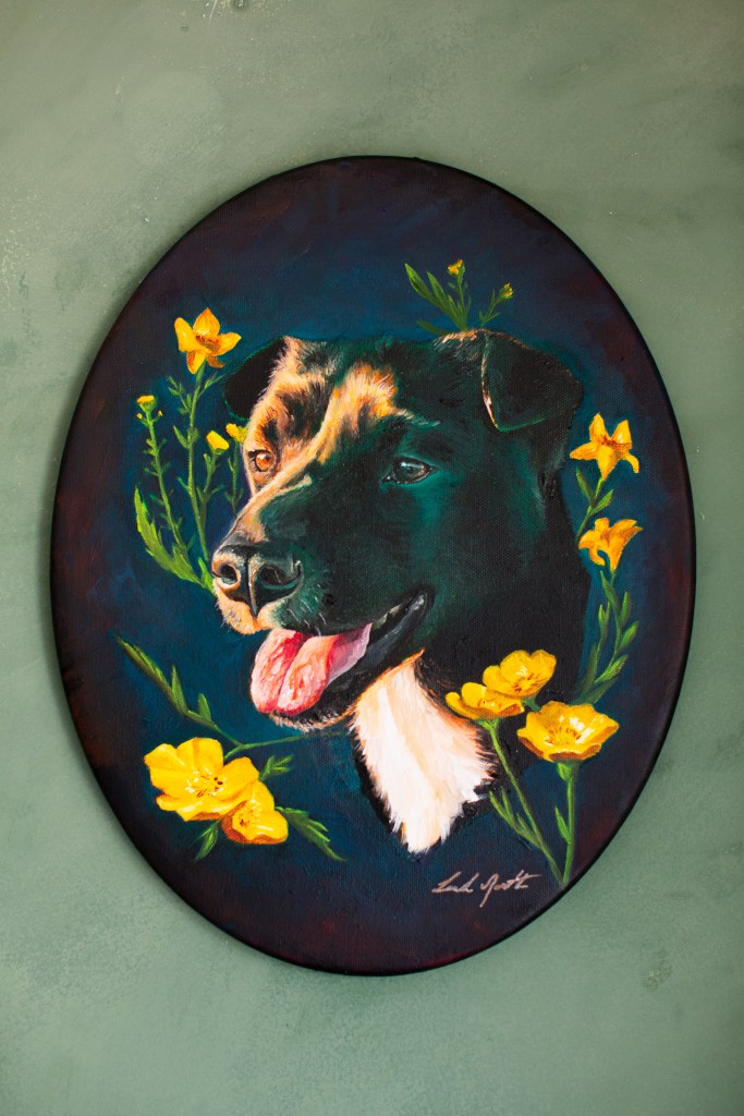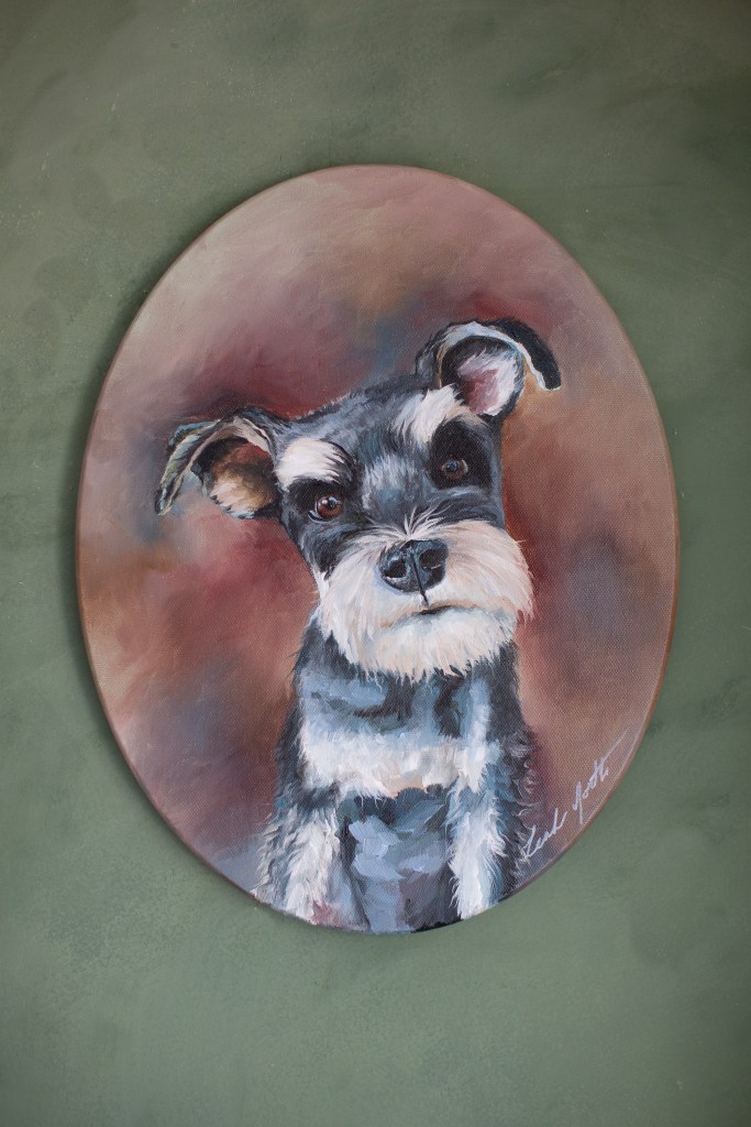 While Leah works on large landscape paintings, she often also takes on smaller pet portraits in-between. Contact her if you are interested in a portrait for your pet, and have fun browsing all the cute fur babies in the gallery below!